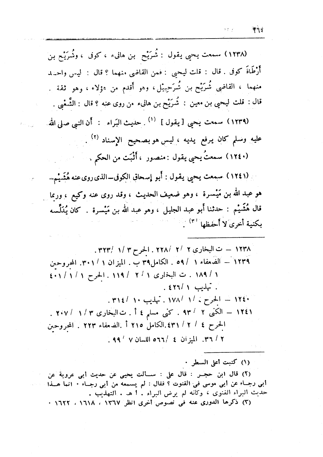 1238 - سَمِعت يحيى يَقُول شُرَيْح بن هَانِئ كوفى وَشُرَيْح بن أَرْطَاة كوفى قَالَ قلت ليحيى فَمن القاضى مِنْهُمَا قَالَ لَيْسَ وَاحِد مِنْهُمَا القاضى شُرَيْح بن شُرَحْبِيل وَهُوَ أقدم من هَؤُلَاءِ وَهُوَ ثِقَة قَالَ قلت ليحيى بن معِين شُرَيْح بن هَانِئ من روى عَنهُ قَالَ الشّعبِيّ