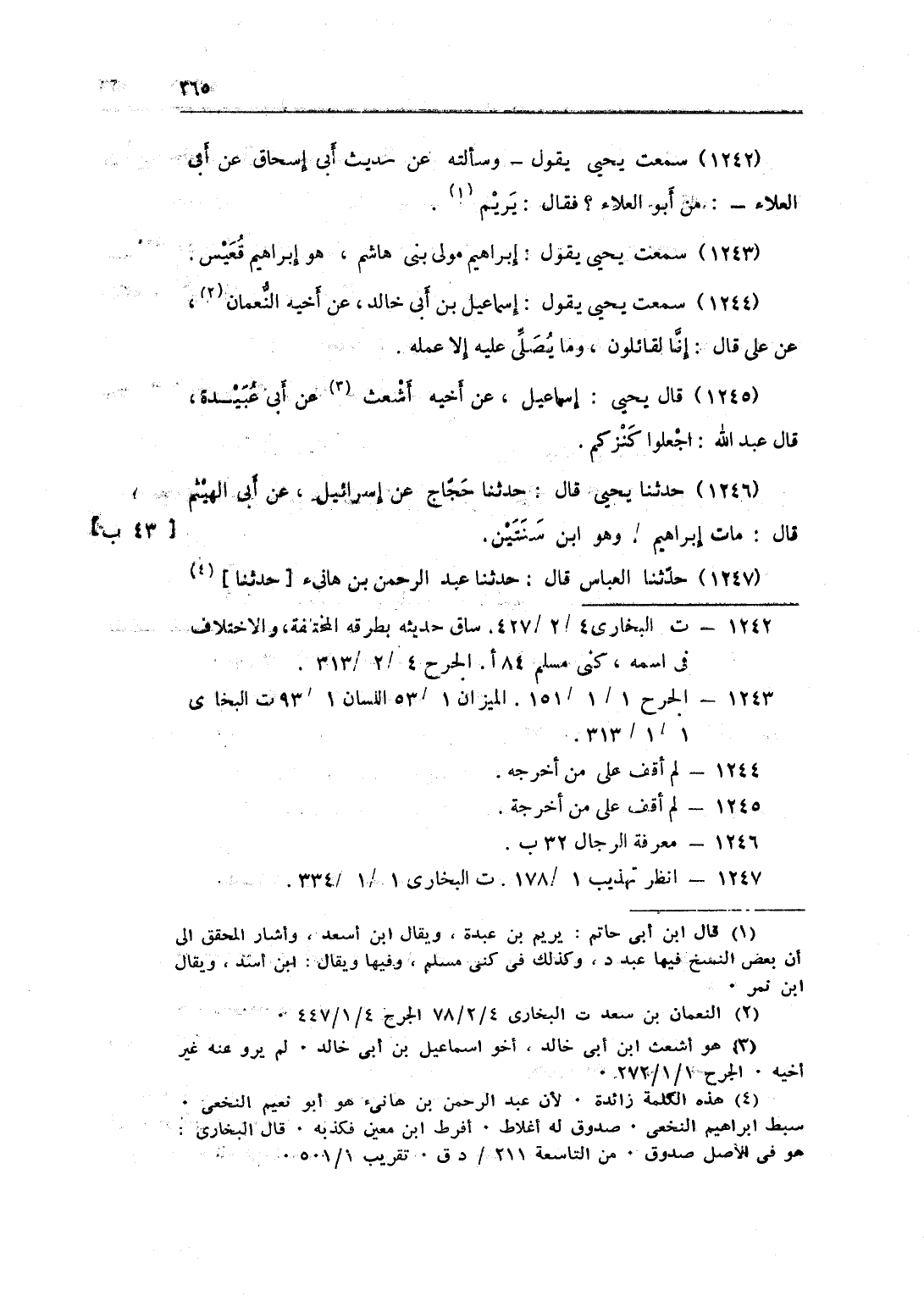 1243 - سَمِعت يحيى يَقُول إِبْرَاهِيم مولى بنى هَاشم هُوَ إِبْرَاهِيم قعيس