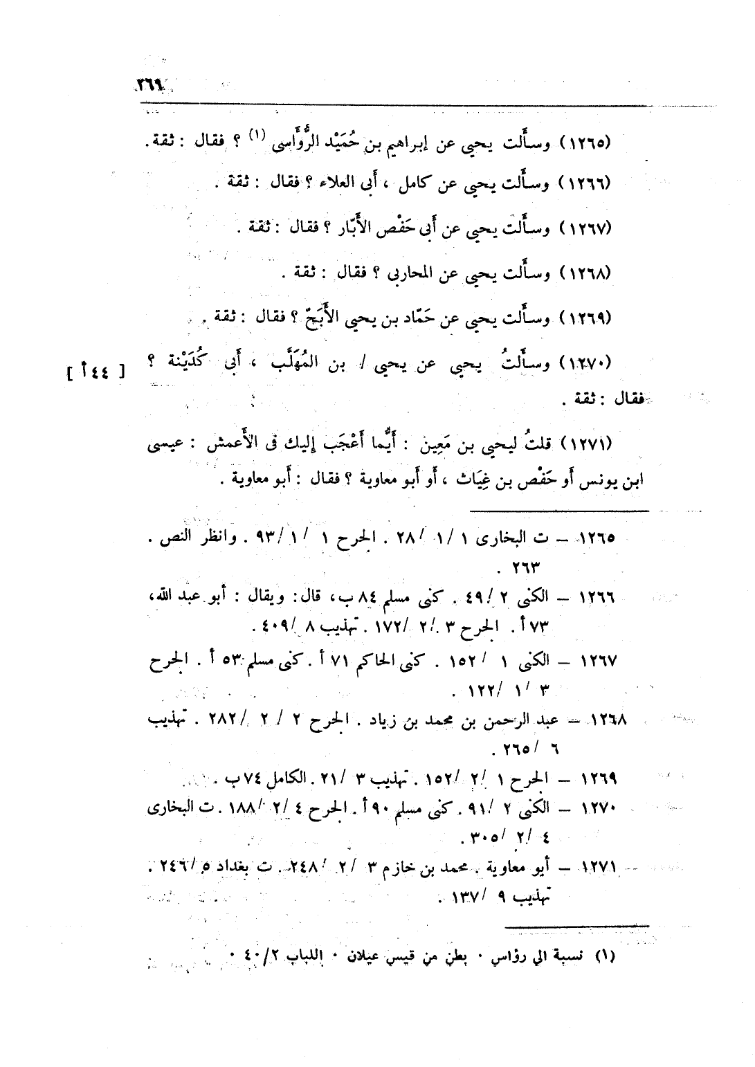 1271 - قلت ليحيى بن معِين أَيّمَا أعجب إِلَيْك فِي الْأَعْمَش عِيسَى بن يُونُس أَو حَفْص بن غياث أَو أَبُو مُعَاوِيَة فَقَالَ أَبُو مُعَاوِيَة