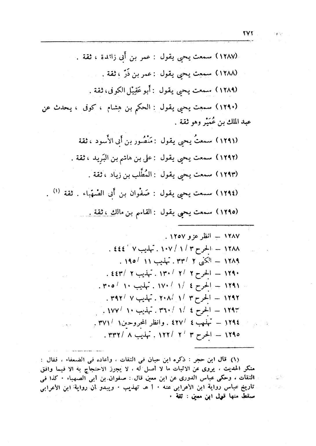 1294 - سَمِعت يحيى يَقُول صَفْوَان بن أَبى الصَّهْبَاء ثِقَة