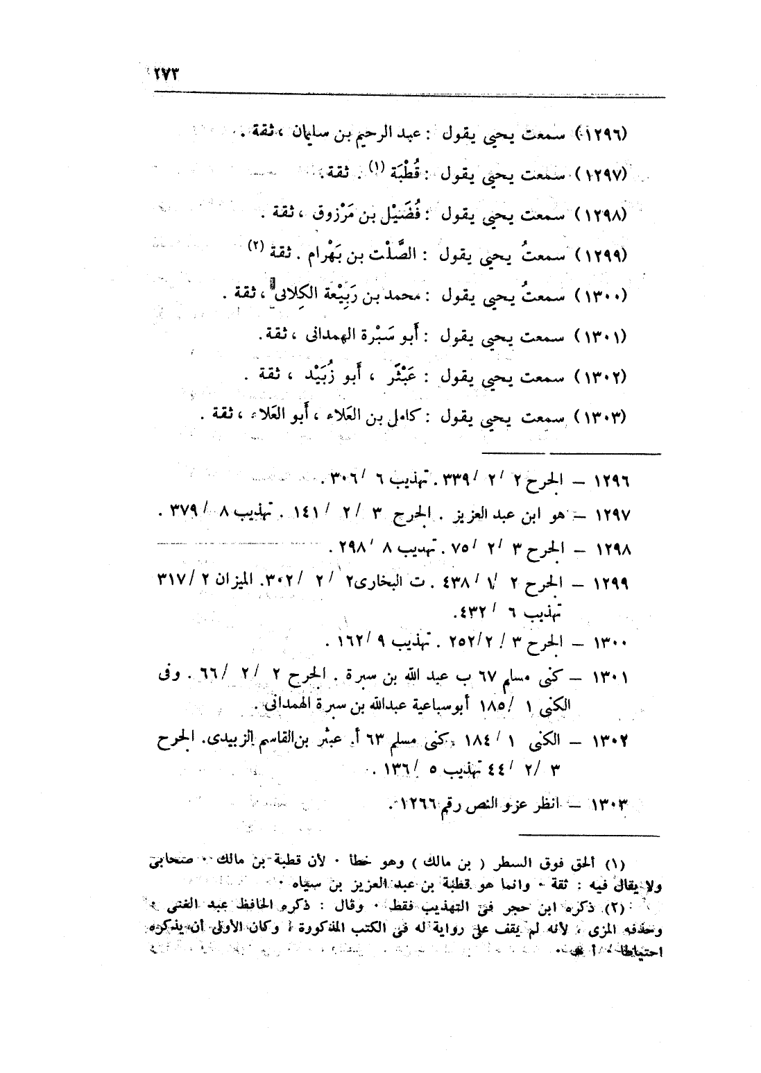 1303 - سَمِعت يحيى يَقُول كَامِل بن الْعَلَاء أَبُو الْعَلَاء ثِقَة