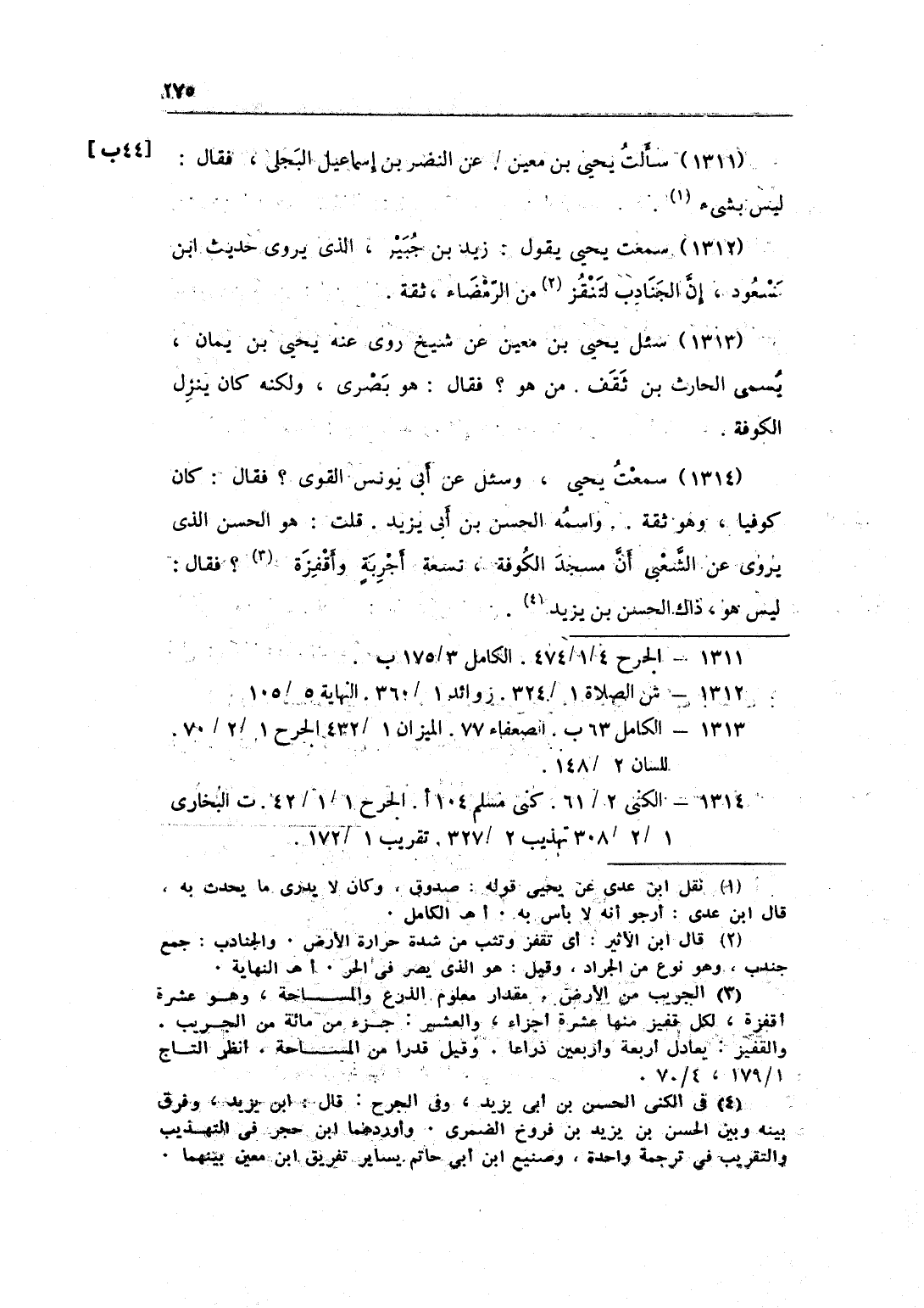 1313 - سُئِلَ يحيى بن معِين عَن شيخ روى عَنهُ يحيى بن يمَان يُسمى الْحَارِث بن ثقف من هُوَ فَقَالَ هُوَ بصرى وَلكنه كَانَ ينزل الْكُوفَة