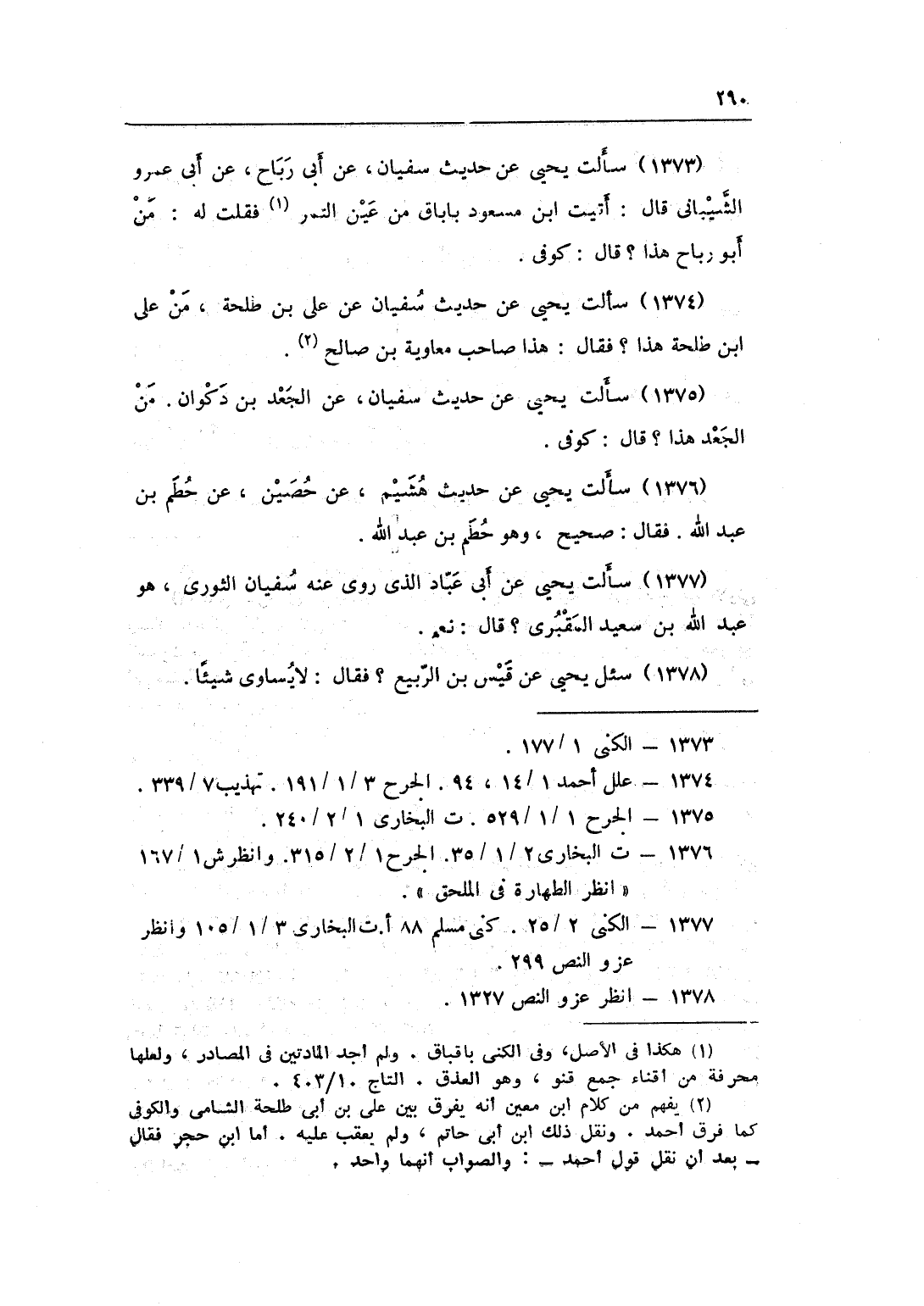 1373 - سَأَلت يحيى عَن حَدِيث سُفْيَان عَن أَبى رَبَاح عَن أَبى عَمْرو الشَّيْبَانِيّ قَالَ أتيت بن مَسْعُود باباق من عين التَّمْر فَقلت لَهُ من أَبُو رَبَاح هَذَا قَالَ كوفى