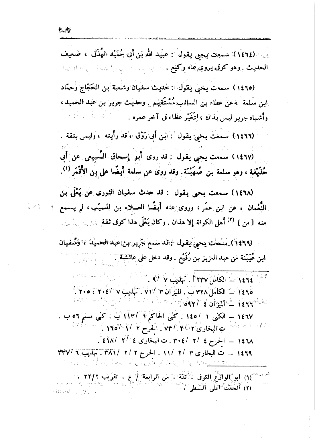 1469 - سَمِعت يحيى يَقُول قد سمع جرير بن عبد الحميد وسُفْيَان بن عُيَيْنَة من عبد الْعَزِيز بن رفيع وَقد دخل على عَائِشَة