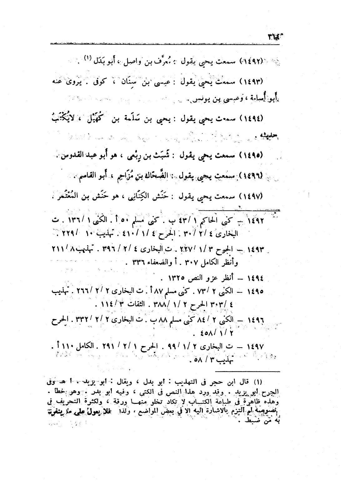 1497 - سَمِعت يحيى يَقُول حَنش الْكِنَانِي هُوَ حَنش بن الْمُعْتَمِر