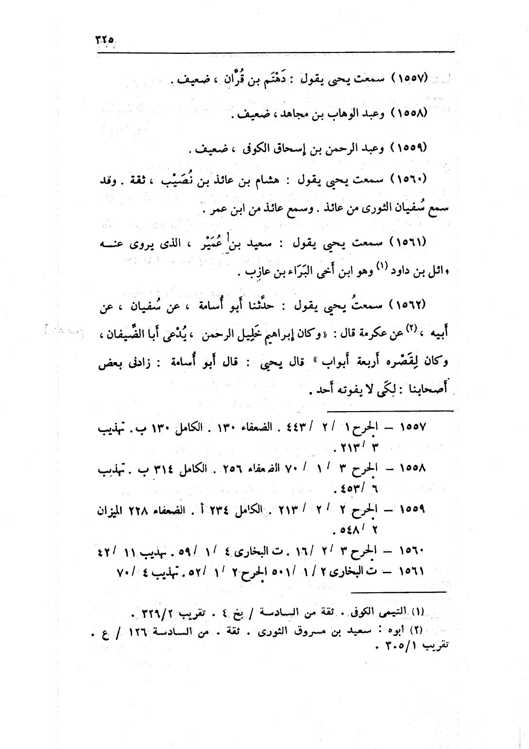 1560 - سَمِعت يحيى يَقُول هِشَام بن عَائِذ بن نصيب ثِقَة وَقد سمع سُفْيَان الثَّوْريّ من عَائِذ وَسمع عَائِذ من بن عمر