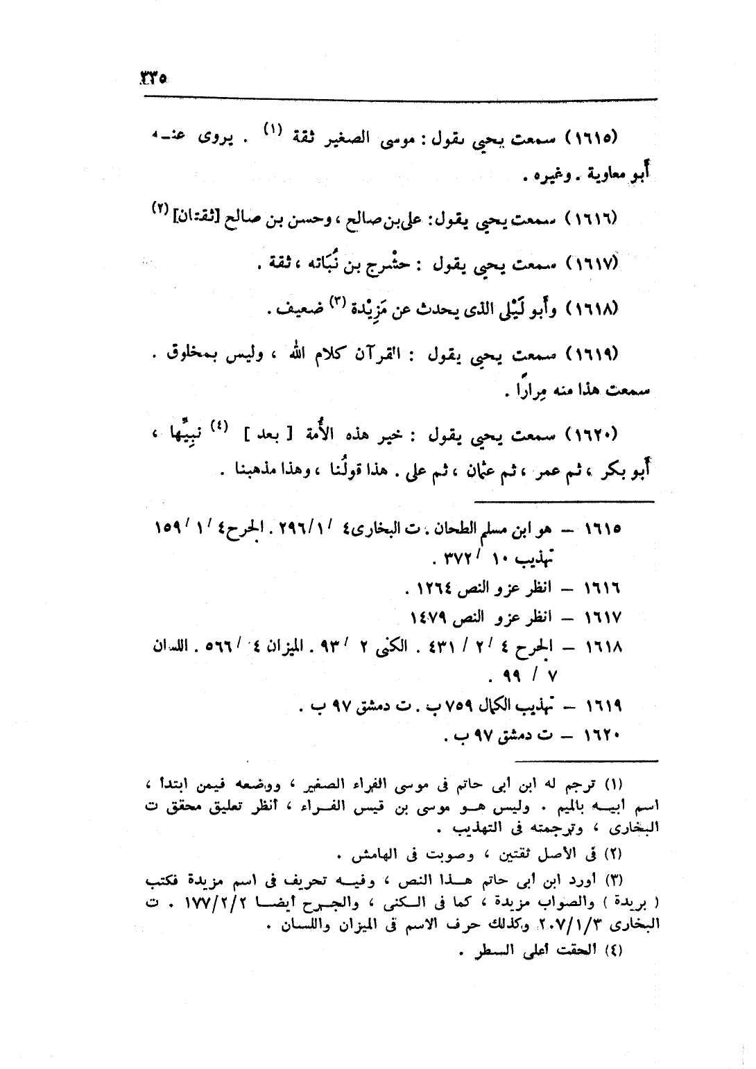 1620 - سَمِعت يحيى يَقُول خير هَذِه الْأمة بعد نبيها أَبُو بكر ثمَّ عمر ثمَّ عُثْمَان ثمَّ على هَذَا قَوْلنَا وَهَذَا مَذْهَبنَا