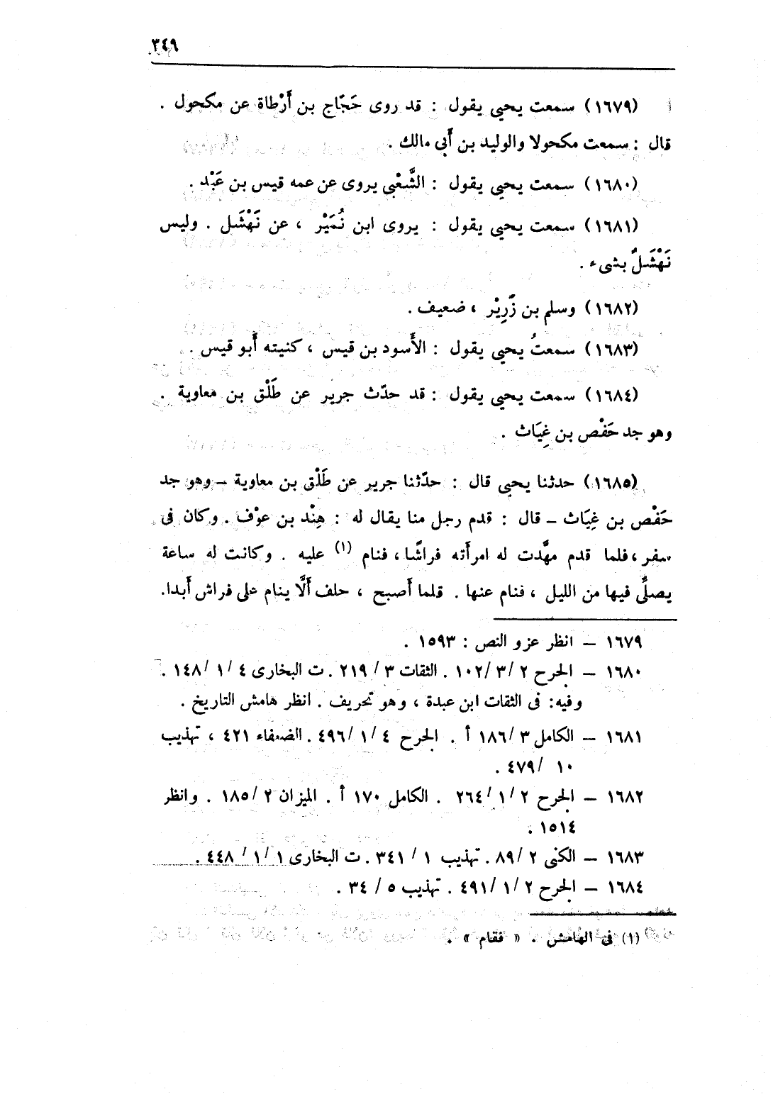 1679 - سَمِعت يحيى يَقُول قد روى حجاج بن أَرْطَاة عَن مَكْحُول قَالَ سَمِعت مَكْحُولًا والوليد بن أَبى مَالك