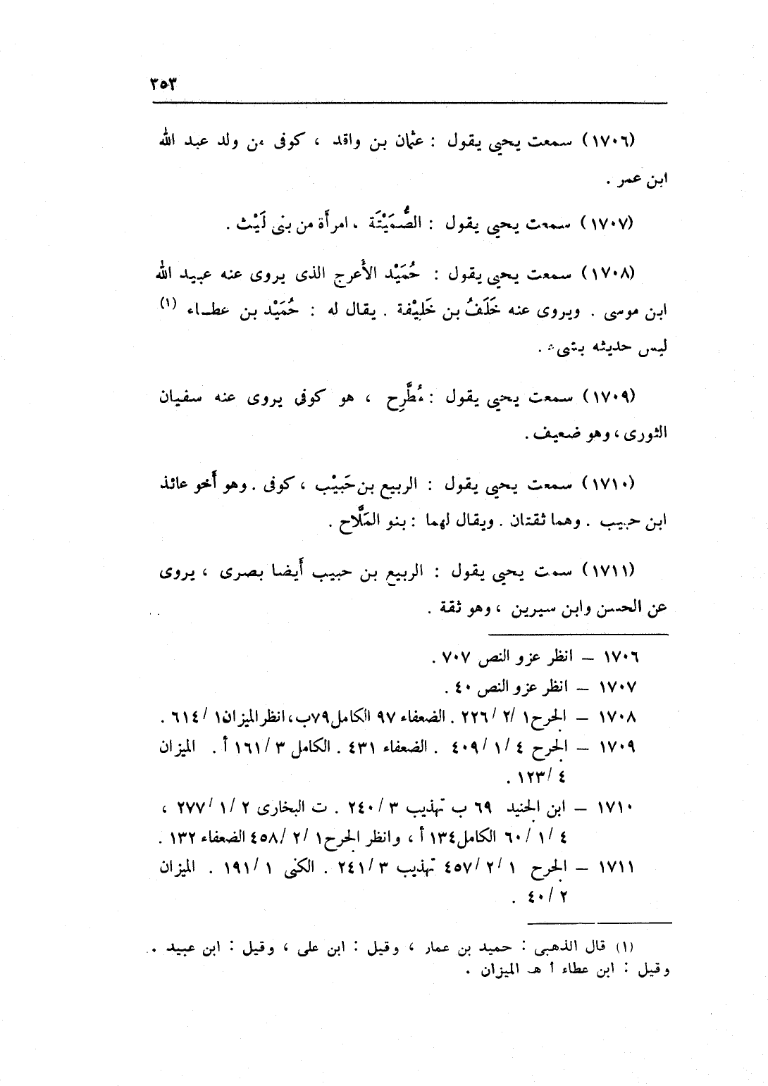 1709 - سَمِعت يحيى يَقُول مطرح هُوَ كوفى يرْوى عَنهُ سُفْيَان الثَّوْريّ وَهُوَ ضَعِيف