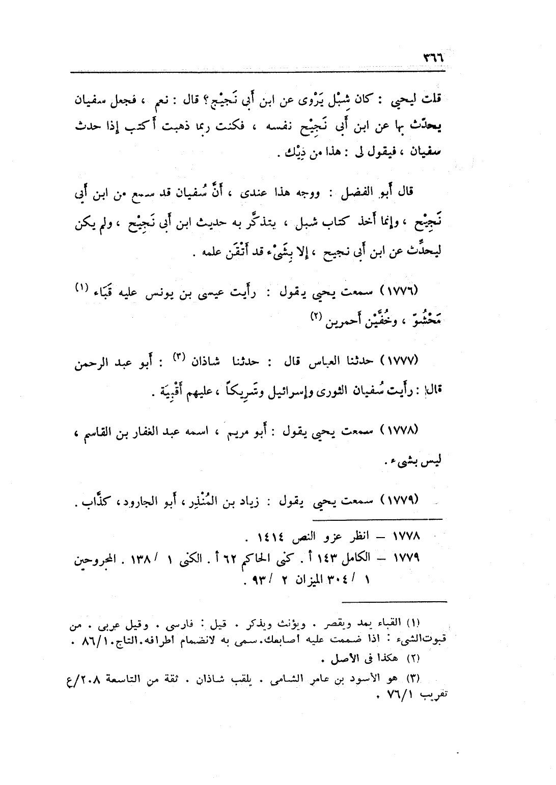 1777 - حَدثنَا الْعَبَّاس قَالَ حَدثنَا شَاذان أَبُو عبد الرَّحْمَن قَالَ رَأَيْت سُفْيَان الثَّوْريّ وَإِسْرَائِيل وشريكا عَلَيْهِم أقبية
