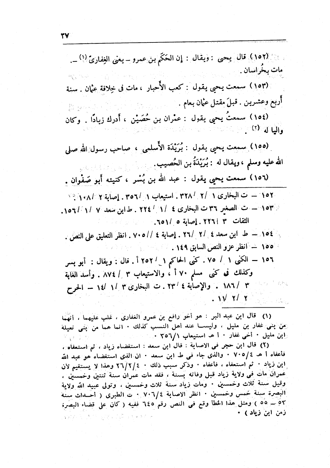 153 - سَمِعت يحيى يَقُول كَعْب الْأَحْبَار مَاتَ فِي خلَافَة عُثْمَان سنة أَربع وَعشْرين قبل مقتل عُثْمَان بعام