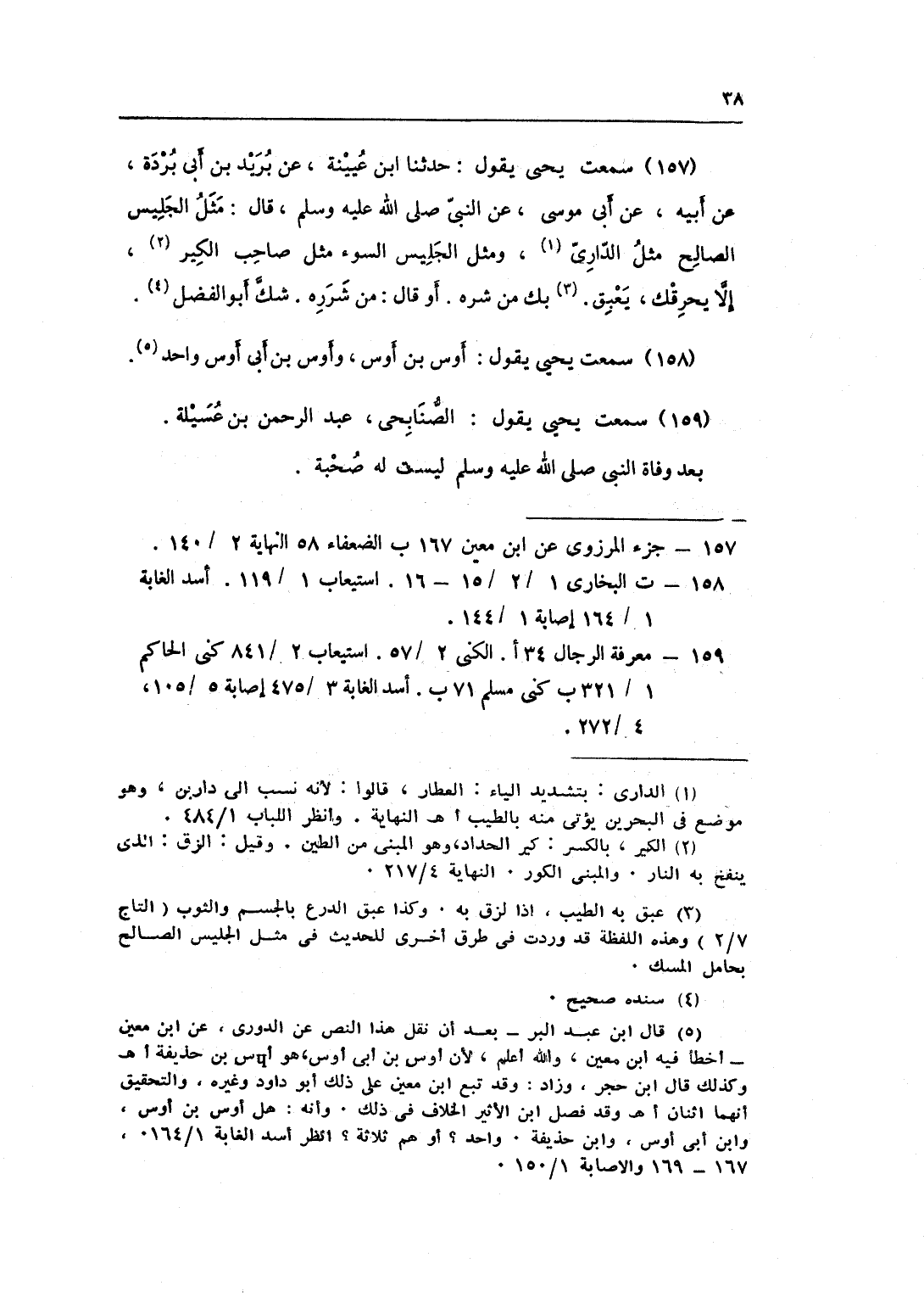 159 - سَمِعت يحيى يَقُول الصنَابحِي عبد الرَّحْمَن بن عسيلة بعد وَفَاة النَّبِي صلى الله عَلَيْهِ وَسلم لَيست لَهُ صُحْبَة وَعبد الله الصنَابحِي يرْوى عَنهُ المدنيون وَيُشبه أَن تكون لَهُ صُحْبَة