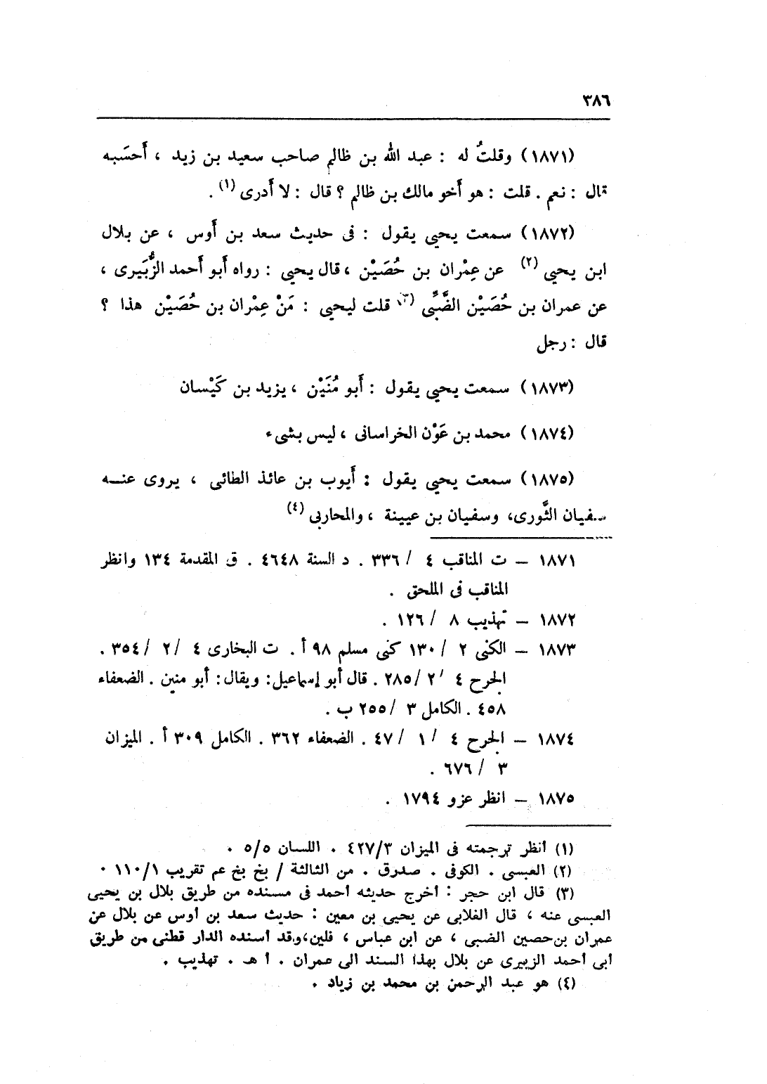 1872 - سَمِعت يحيى يَقُول فِي حَدِيث سعد بن أَوْس عَن بِلَال بن يحيى عَن عمرَان بن حُصَيْن قَالَ يحيى رَوَاهُ أَبُو أَحْمد الزبيرِي عَن عمرَان بن حُصَيْن الضَّبِّيّ قلت ليحيى من عمرَان بن حُصَيْن هَذَا قَالَ رجل