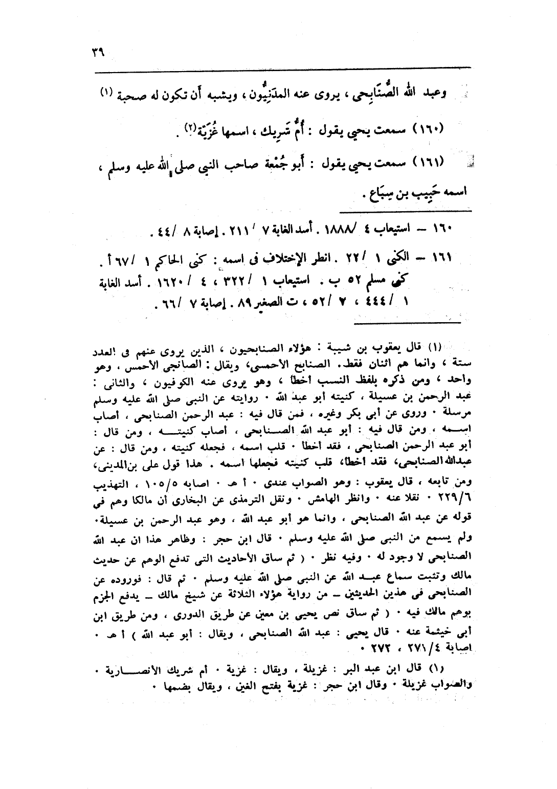 161 - سَمِعت يحيى يَقُول أَبُو جُمُعَة صَاحب النَّبِي صلى الله عَلَيْهِ وَسلم اسْمه حبيب بن سِبَاع