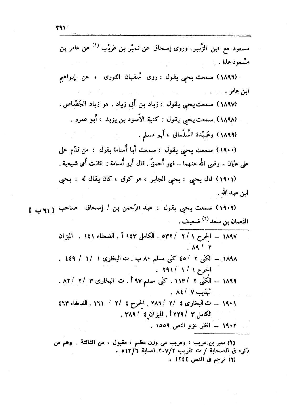 1902 - سَمِعت يحيى يَقُول عبد الرَّحْمَن بن إِسْحَاق صَاحب النُّعْمَان بن سعد ضَعِيف