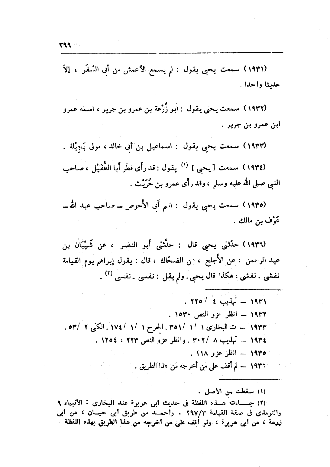 1934 - سَمِعت يحيى يَقُول قد رأى فطر أَبَا الطُّفَيْل صَاحب النَّبِي صلى الله عَلَيْهِ وَسلم وَقد رأى عَمْرو بن حُرَيْث