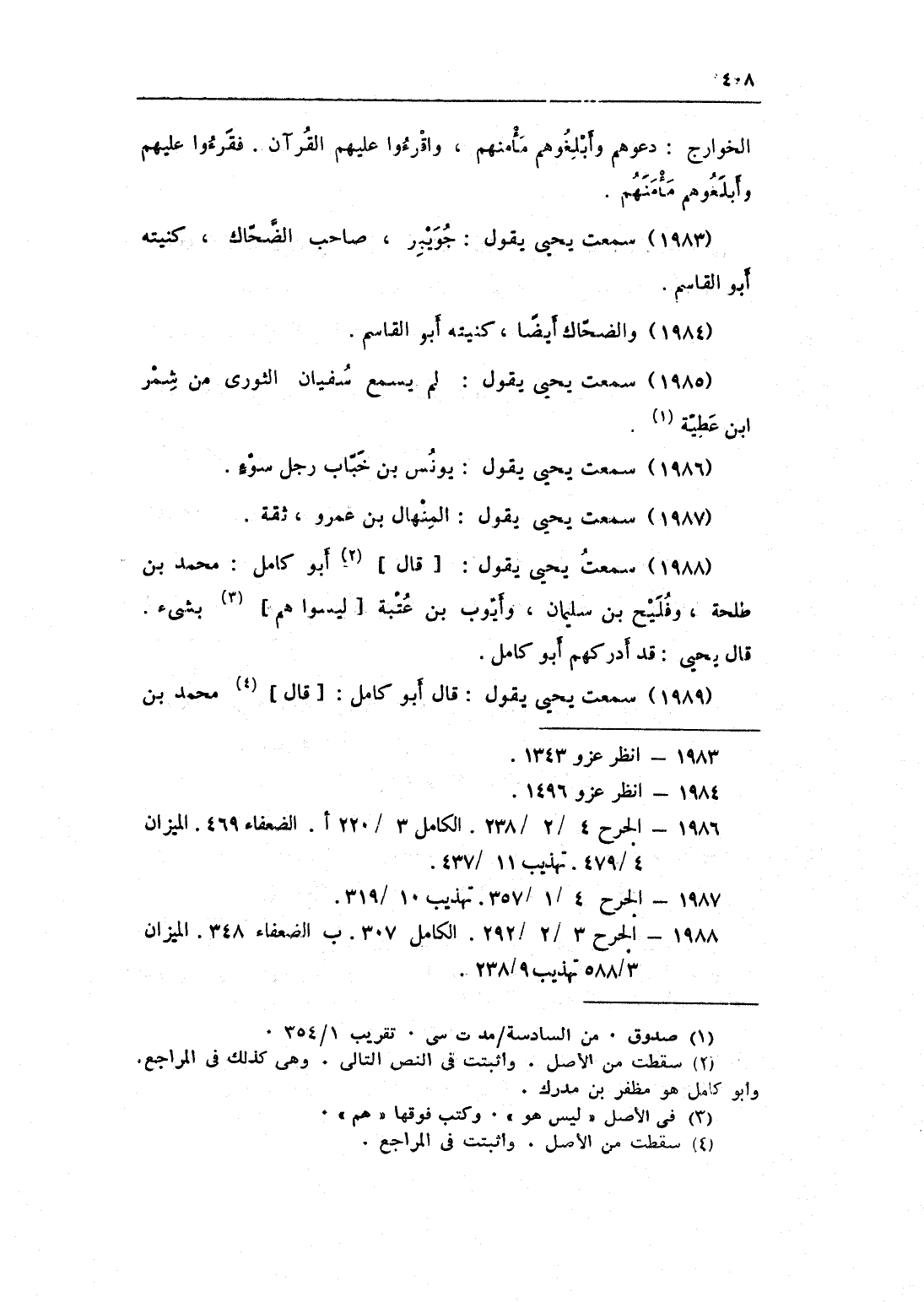 1988 - سَمِعت يحيى يَقُول قَالَ أَبُو كَامِل مُحَمَّد بن طَلْحَة وفليح بن سُلَيْمَان وَأَيوب بن عتبَة لَيْسُوا هم بِشَيْء قَالَ يحيى قد أدركهم أَبُو كَامِل