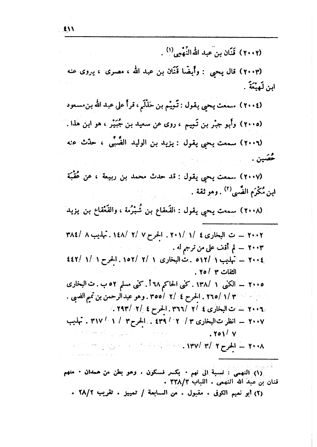 2008 - سَمِعت يحيى يَقُول الْقَعْقَاع بن شبْرمَة والقعقاع بن يزِيد بن شبْرمَة سمع مِنْهُمَا سُفْيَان الثَّوْريّ وفضيل وَجَرِير الضَّبِّيّ سمع مِنْهُمَا