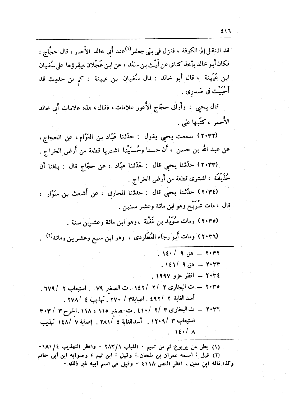 2033 - حَدثنَا يحيى قَالَ حَدثنَا عباد عَن حجاج قَالَ بلغنَا أَن حُذَيْفَة اشْترى قِطْعَة من أَرض الْخراج