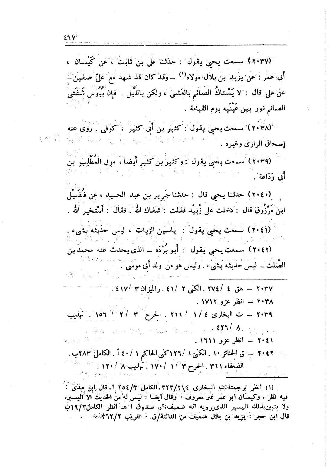 2041 - سَمِعت يحيى يَقُول ياسين الزيات لَيْسَ حَدِيثه بِشَيْء
