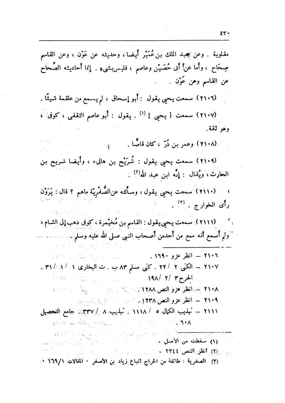 2110 - سَمِعت يحيى يَقُول وَسَأَلته عَن الصفرية مَا هم قَالَ يرَوْنَ رأى الْخَوَارِج