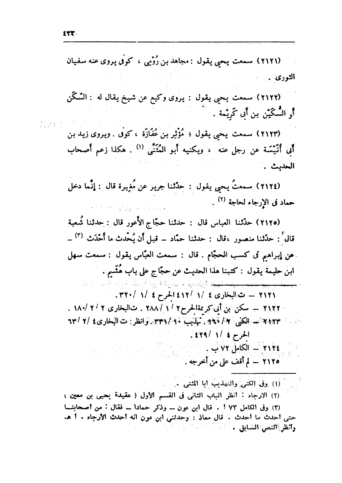 2124 - سَمِعت يحيى يَقُول حَدثنَا جرير عَن مُغيرَة قَالَ إِنَّمَا دخل حَمَّاد فِي الإرجاء لحَاجَة