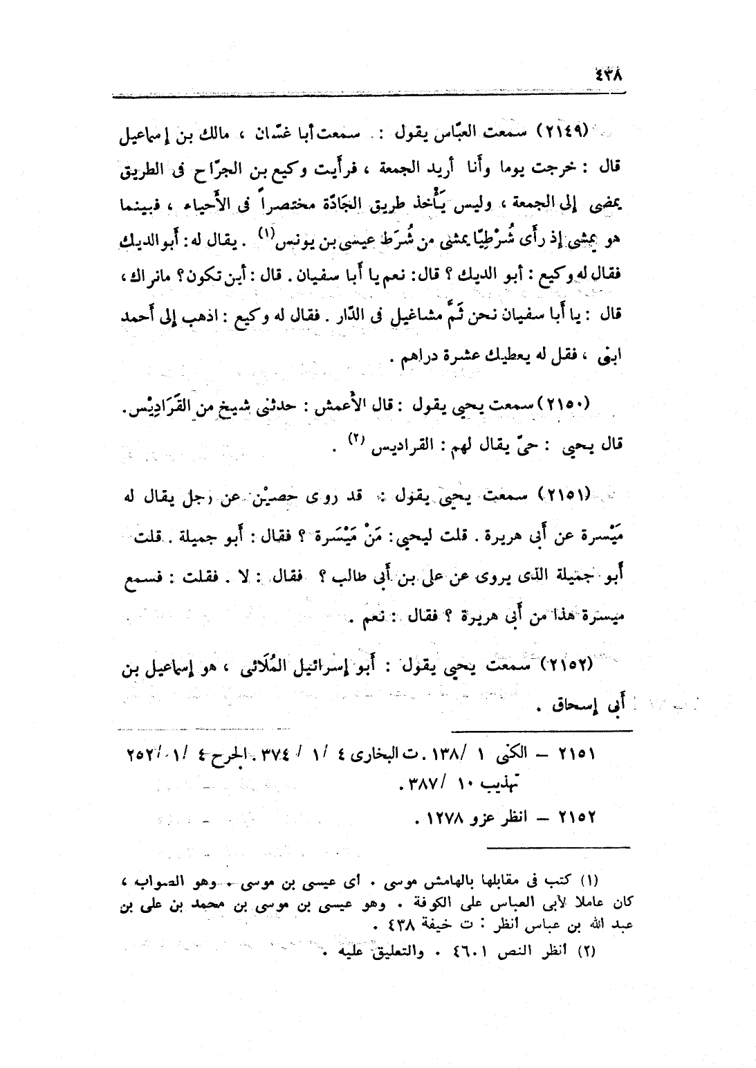 2150 - سَمِعت يحيى يَقُول قَالَ الْأَعْمَش حَدثنِي شيخ من القراديس قَالَ يحيى حَيّ يُقَال لَهُم القراديس