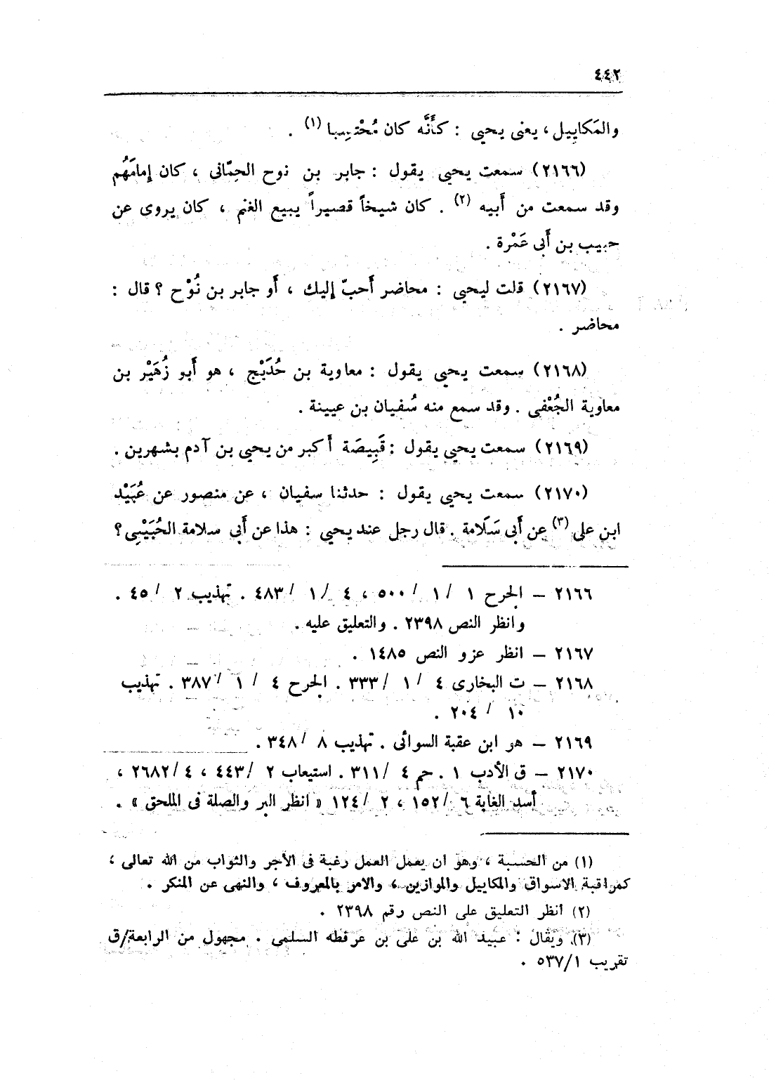 2168 - سَمِعت يحيى يَقُول مُعَاوِيَة بن حديج هُوَ أَبُو زُهَيْر بن مُعَاوِيَة الْجعْفِيّ وَقد سمع مِنْهُ سُفْيَان بن عُيَيْنَة