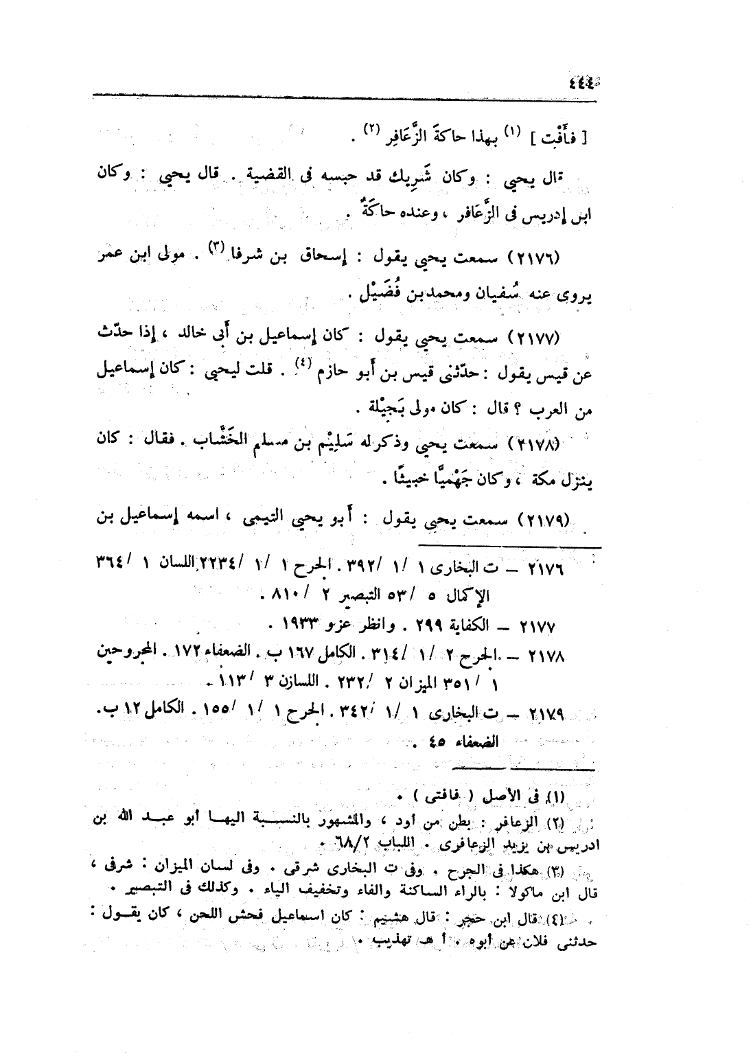2177 - سَمِعت يحيى يَقُول كَانَ إِسْمَاعِيل بن أبي خَالِد إِذا حدث عَن قيس يَقُول حَدثنِي قيس بن أَبُو حَازِم قلت ليحيى كَانَ إِسْمَاعِيل من الْعَرَب قَالَ كَانَ مولى بجيلة