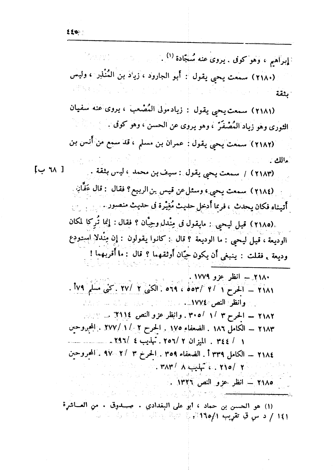 2185 - قيل ليحيى مَا يَقُول فِي منْدَل وحبان فَقَالَ إِنَّمَا تركا لمَكَان الْوَدِيعَة قيل ليحيى مَا الْوَدِيعَة قَالَ كَانُوا يَقُولُونَ إِن مندلا استودع وَدِيعَة فَقلت يَنْبَغِي أَن يكون حبَان أوثقهما قَالَ مَا أقربهما