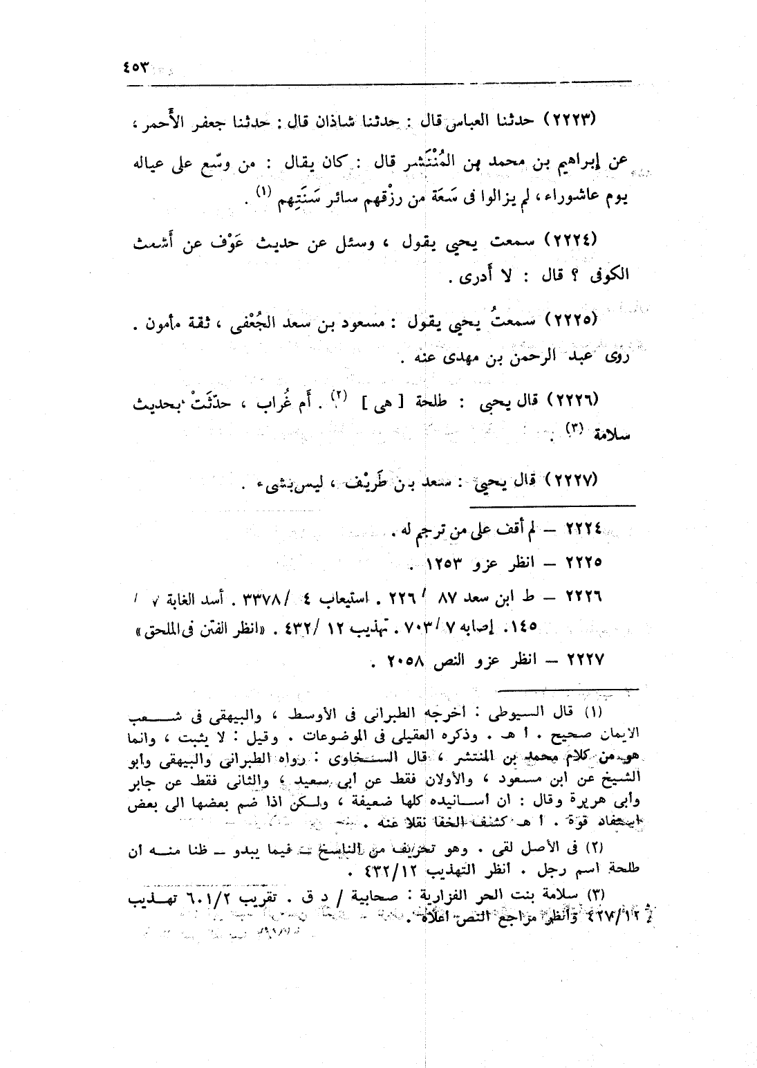 2226 - قَالَ يحيى طَلْحَة هِيَ أم غراب حدثت بِحَدِيث سَلامَة