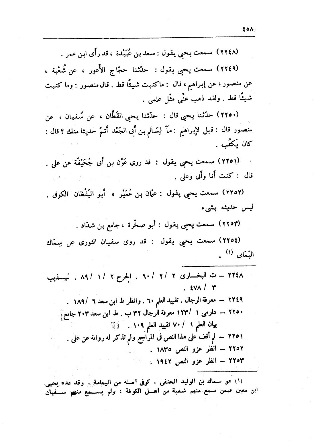 2254 - سَمِعت يحيى يَقُول قد روى سُفْيَان الثَّوْريّ عَن سماك اليمامي