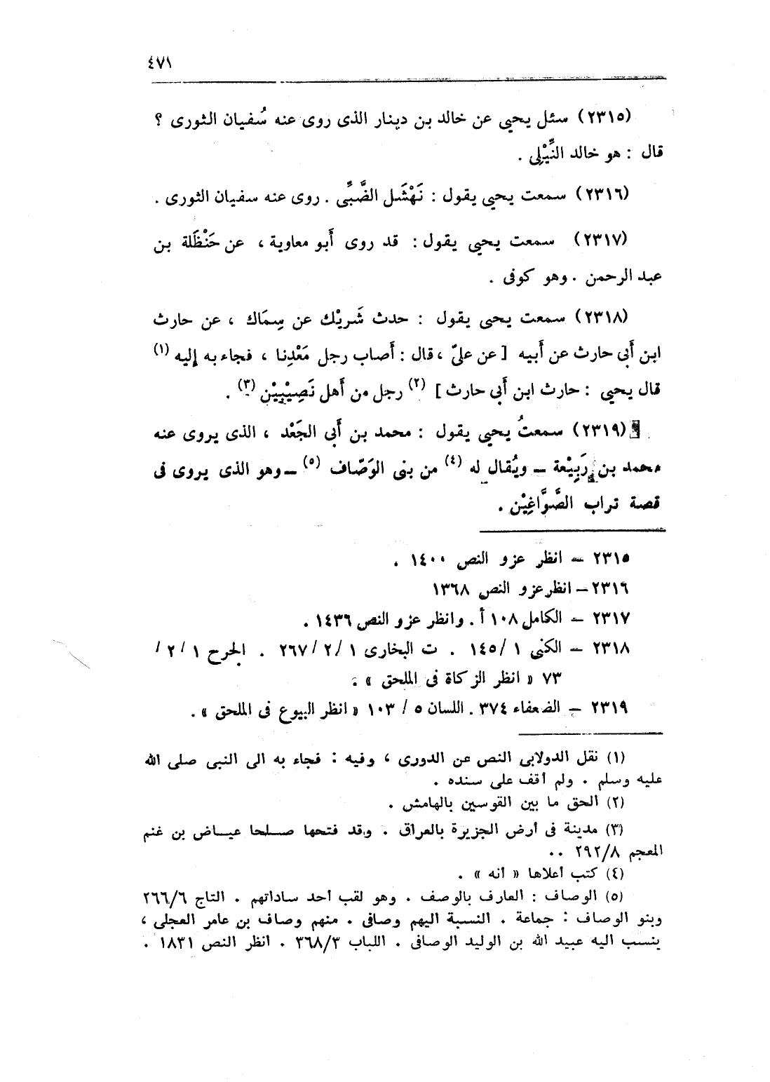 2315 - سُئِلَ يحيى عَن خَالِد بن دِينَار الَّذِي روى عَنهُ سُفْيَان الثَّوْريّ قَالَ هُوَ خَالِد النيلي
