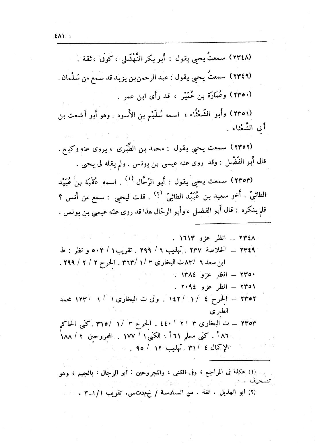 2353 - سَمِعت يحيى يَقُول أَبُو الرّحال اسْمه عقبَة بن عبيد الطَّائِي أَخُو سعيد بن عبيد الطَّائِي قلت ليحيى سمع من أنس فَلم يُنكره قَالَ أَبُو الْفضل وَأَبُو الرّحال هَذَا قد روى عَنهُ عِيسَى بن يُونُس