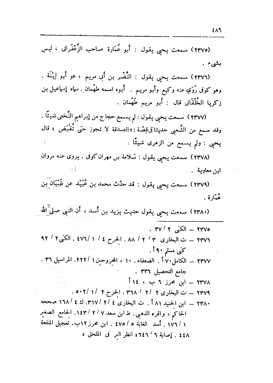 2377 - سَمِعت يحيى يَقُول لم يسمع حجاج من إِبْرَاهِيم النَّخعِيّ شَيْئا وَقد سمع من الشّعبِيّ حَدِيثا فِي قصَّة الصَّدَقَة لَا تجوز حَتَّى تقبض قَالَ يحيى وَلم يسمع من الزُّهْرِيّ شَيْئا