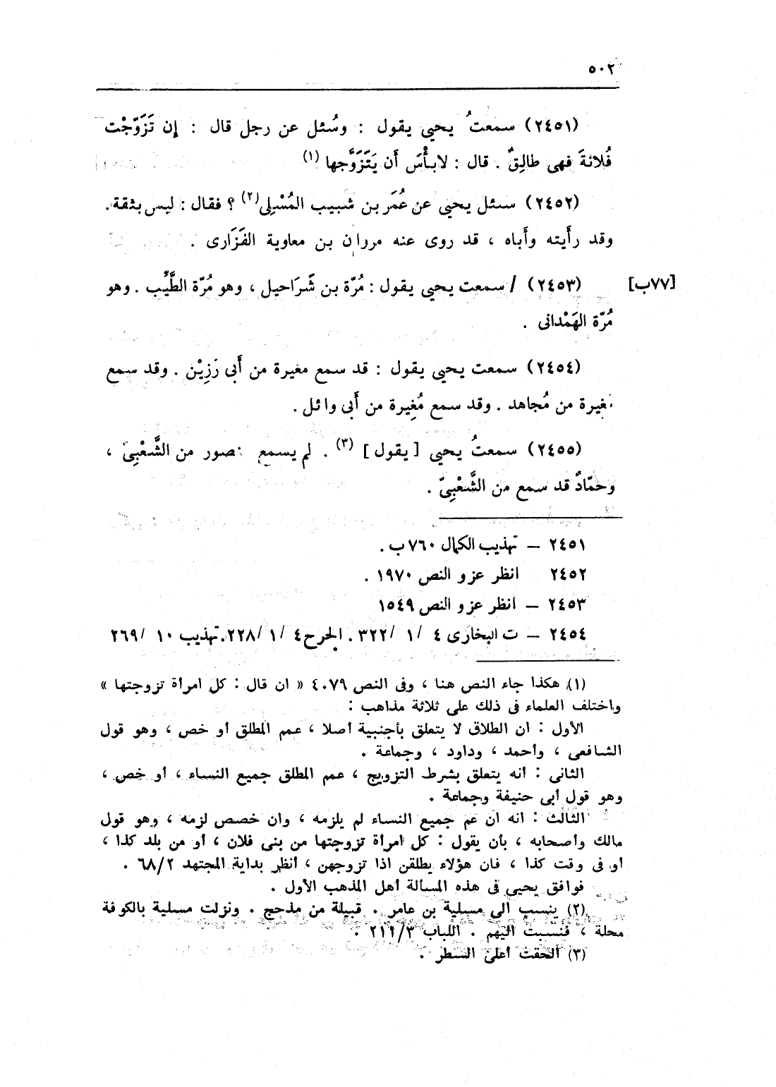 2453 - سَمِعت يحيى يَقُول مرّة بن شرَاحِيل وَهُوَ مرّة الطّيب وَهُوَ مرّة الْهَمدَانِي