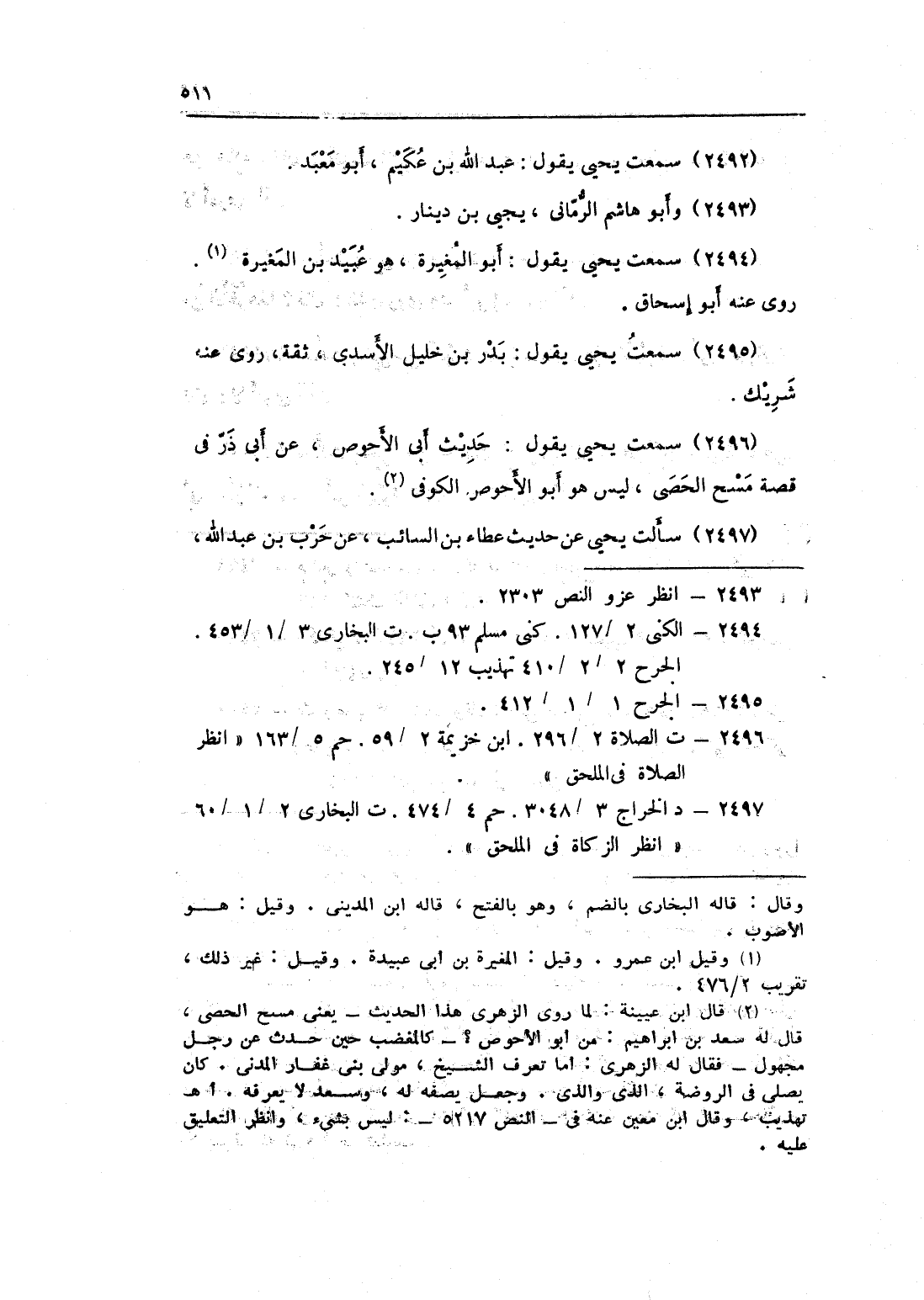 2496 - سَمِعت يحيى يَقُول حَدِيث أبي الْأَحْوَص عَن أبي ذَر فِي قصَّة مسح الْحَصَى لَيْسَ هُوَ أَبُو الْأَحْوَص الْكُوفِي