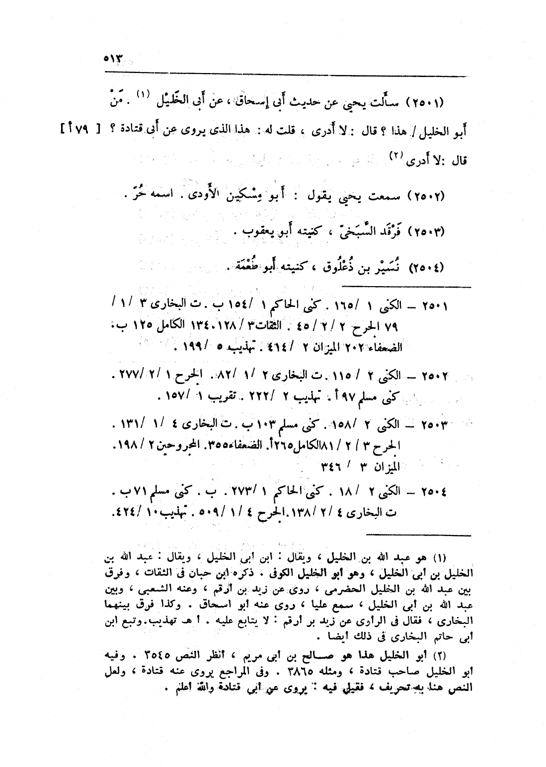 2501 - سَأَلت يحيى عَن حَدِيث أبي إِسْحَاق عَن أبي الْخَلِيل من أَبُو الْخَلِيل هَذَا قَالَ لَا أَدْرِي قلت لَهُ هَذَا الَّذِي يرْوى عَن أبي قَتَادَة قَالَ لَا أَدْرِي