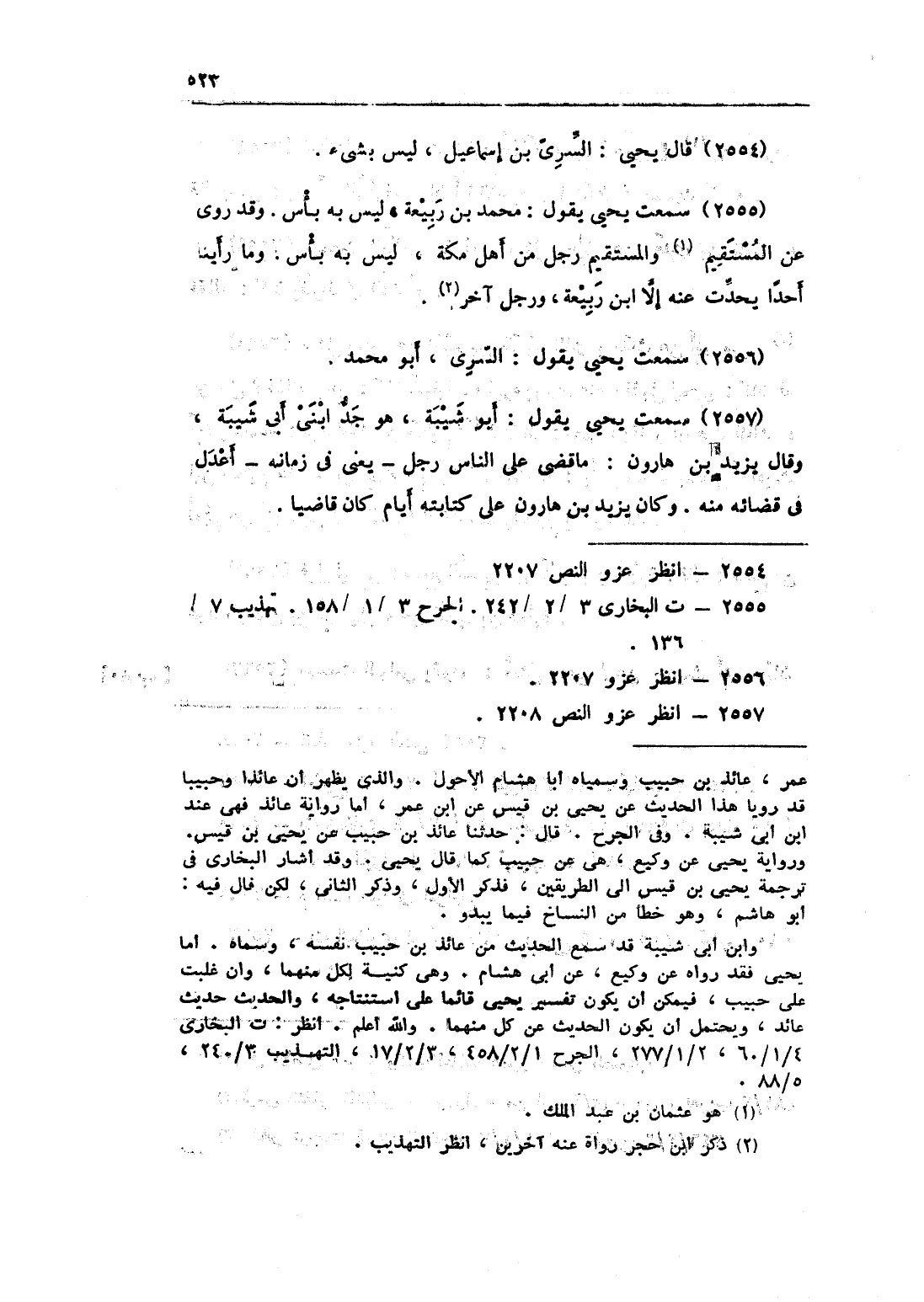 2555 - سَمِعت يحيى يَقُول مُحَمَّد بن ربيعَة لَيْسَ بِهِ بَأْس وَقد روى عَن الْمُسْتَقيم والمستقيم رجل من أهل مَكَّة لَيْسَ بِهِ بَأْس وَمَا رَأينَا أحدا يحدث عَنهُ إِلَّا بن ربيعَة وَرجل آخر