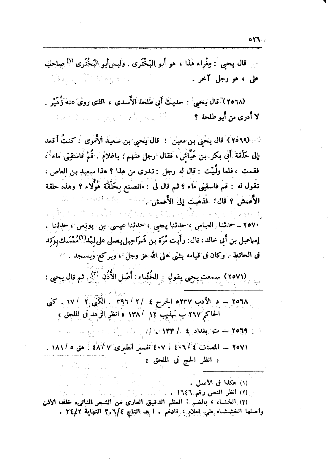2569 - قَالَ يحيى بن معِين قَالَ يحيى بن سعيد الْأمَوِي كنت أقعد إِلَى حَلقَة أبي بكر بن عَيَّاش فَقَالَ رجل مِنْهُم يَا غُلَام قُم فاسقني مَاء فَقُمْت فَلَمَّا وليت قَالَ لَهُ رجل تَدْرِي من هَذَا هَذَا سعيد بن الْعَاصِ تَقول لَهُ قُم فاسقني مَاء ثمَّ قَالَ لي مَا تصنع بِحَلقَة هَؤُلَاءِ وَهَذَا حَلقَة الْأَعْمَش قَالَ فَذَهَبت إِلَى الْأَعْمَش