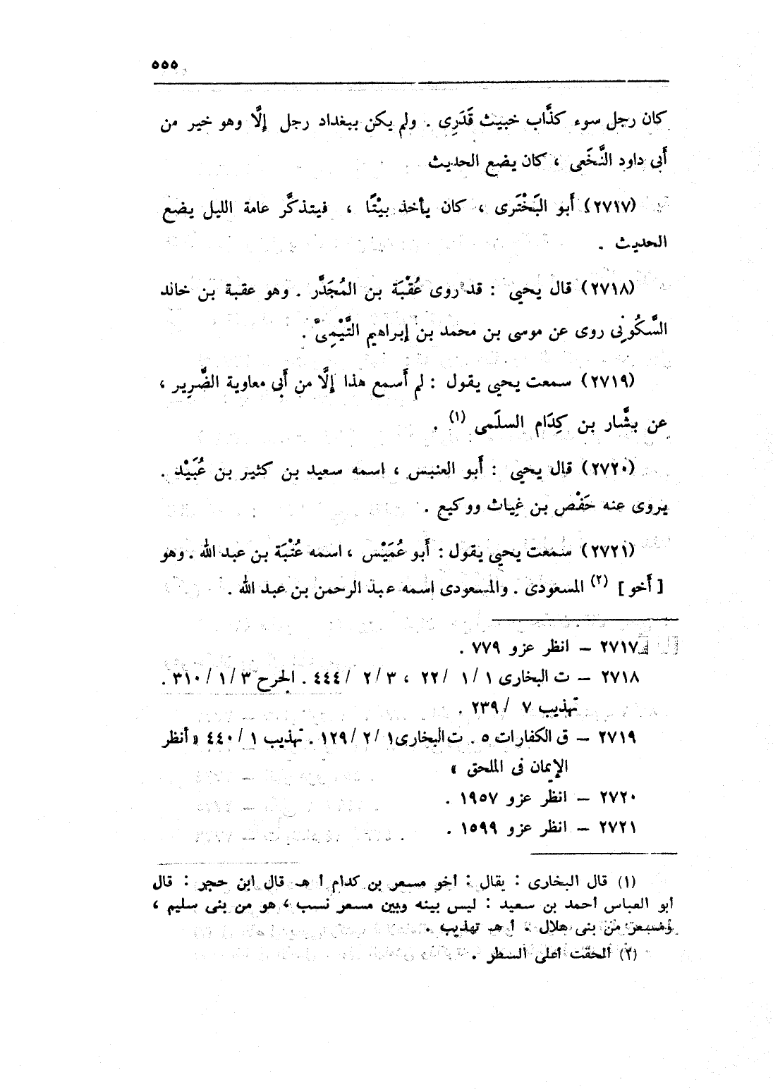 2719 - سَمِعت يحيى يَقُول لم أسمع هَذَا إِلَّا من أبي مُعَاوِيَة الضَّرِير عَن بشار بن كدام السّلمِيّ