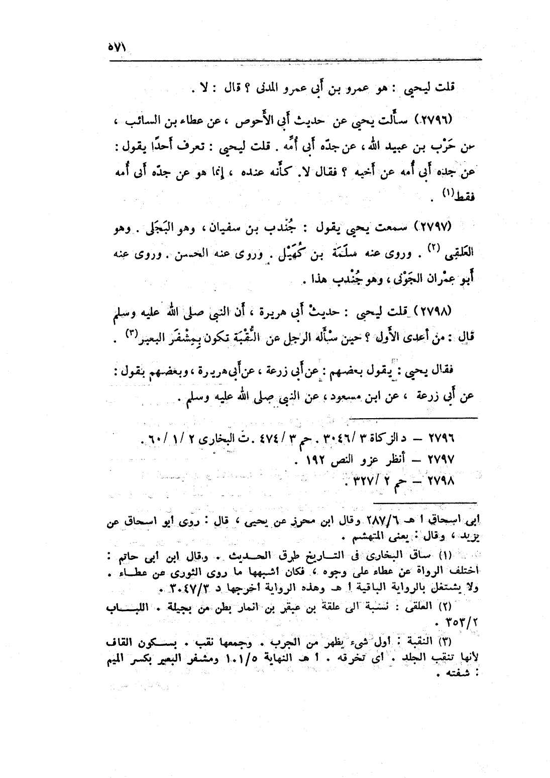 2797 - سَمِعت يحيى يَقُول جُنْدُب بن سُفْيَان وَهُوَ البَجلِيّ وَهُوَ العلقى وروى عَنهُ سَلمَة بن كهيل وروى عَنهُ الْحسن وروى عَنهُ أَبُو عمرَان الْجونِي وَهُوَ جُنْدُب هَذَا