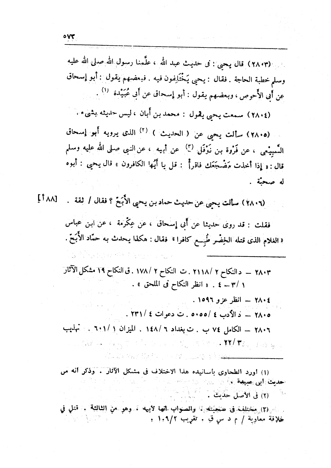 2806 - سَأَلت يحيى عَن حَدِيث حَمَّاد بن يحيى الْأَبَح فَقَالَ ثِقَة فَقلت قد روى حَدِيثا عَن أَبى إِسْحَاق عَن عِكْرِمَة عَن بن عَبَّاس الْغُلَام الَّذِي قَتله الْخضر طبع كَافِرًا فَقَالَ هَكَذَا يحدث بِهِ حَمَّاد الْأَبَح وَغَيره يَقُول عَن أَبى إِسْحَاق عَن سعيد بن جُبَير وَلَا أرى الحَدِيث إِلَّا حَدِيث سعيد بن جُبَير