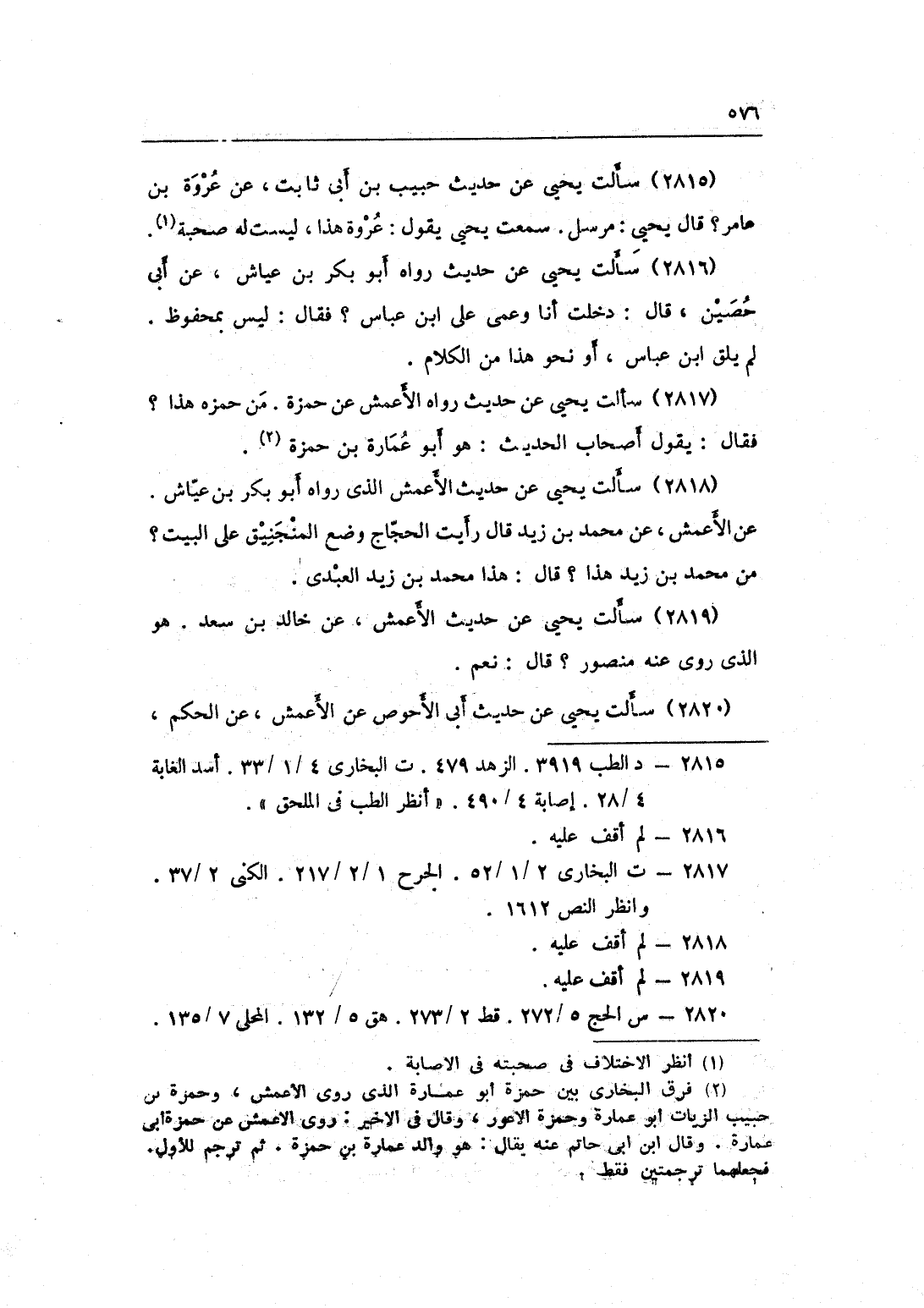 2815 - سَأَلت يحيى عَن حَدِيث حبيب بن أَبى ثَابت عَن عُرْوَة بن عَامر قَالَ يحيى مُرْسل سَمِعت يحيى يَقُول عُرْوَة هَذَا لَيست لَهُ صُحْبَة