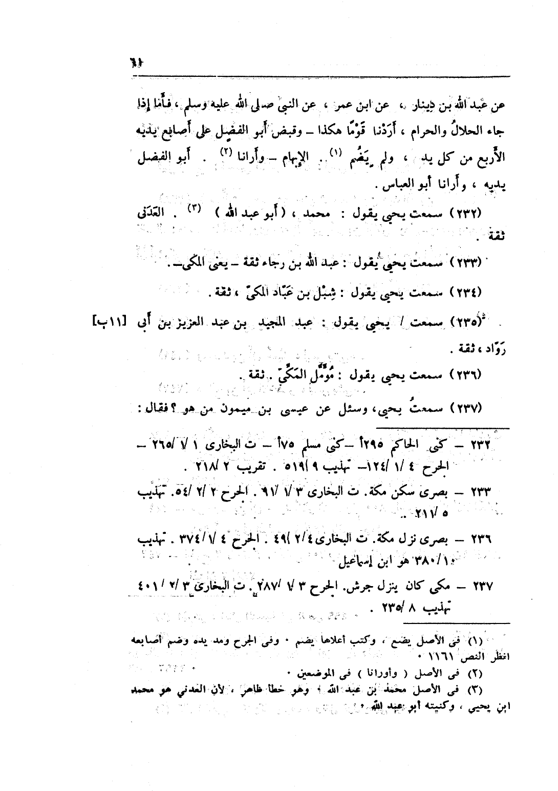 237 - سَمِعت يحيى وَسُئِلَ عَن عِيسَى بن مَيْمُون من هُوَ فَقَالَ هُوَ مكي هُوَ الَّذِي يرْوى عَنهُ أَبُو عَاصِم وَغَيره التَّفْسِير عَن بن أَبى نجيح وَيُقَال لَهُ عِيسَى الجرشِي قيل ليحيى فعيسى الآخر قَالَ لَيْسَ حَدِيثه بِشَيْء