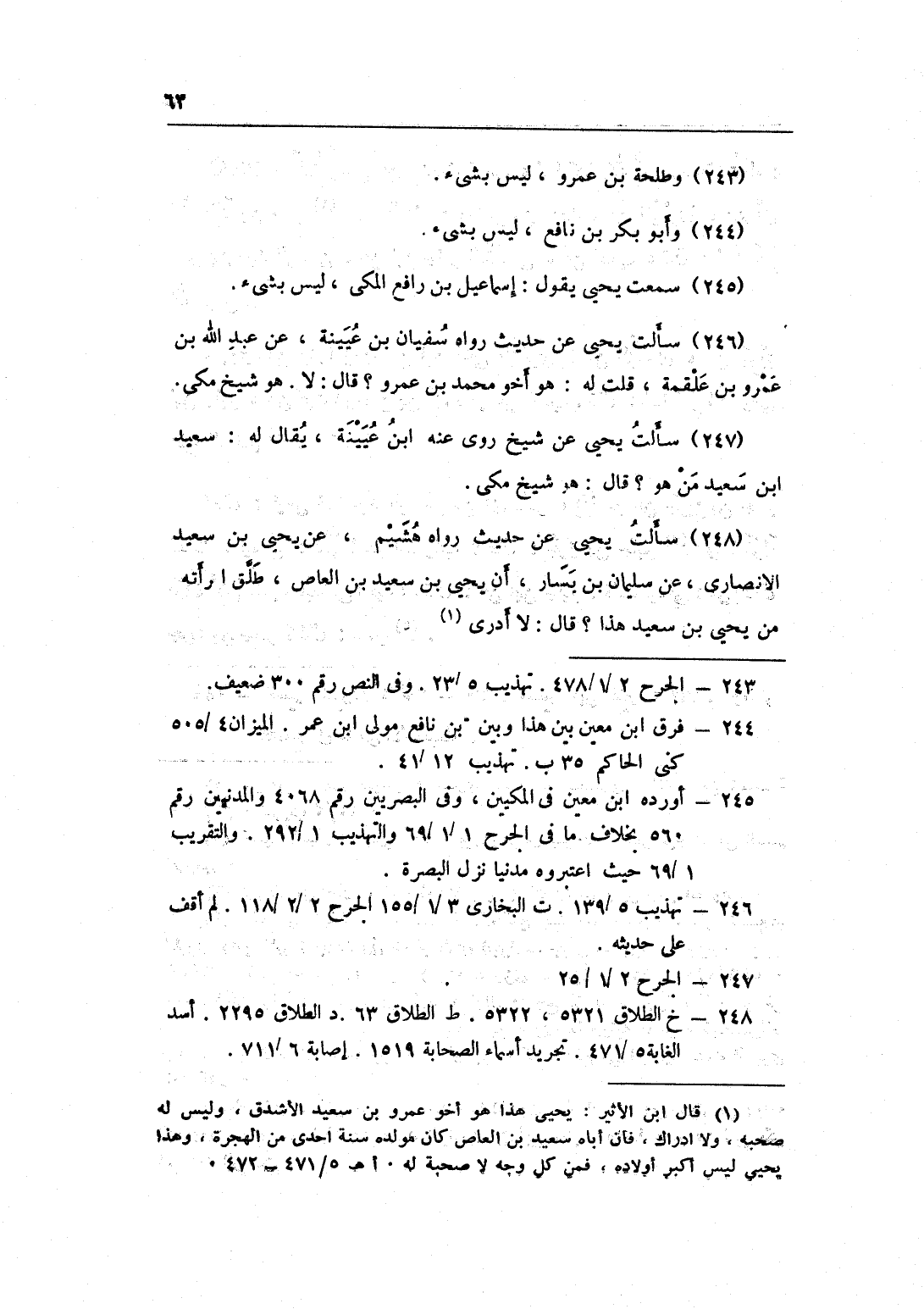 247 - سَأَلت يحيى عَن شيخ روى عَنهُ بن عُيَيْنَة يُقَال لَهُ سعيد بن سعيد من هُوَ قَالَ هُوَ شيخ مكي