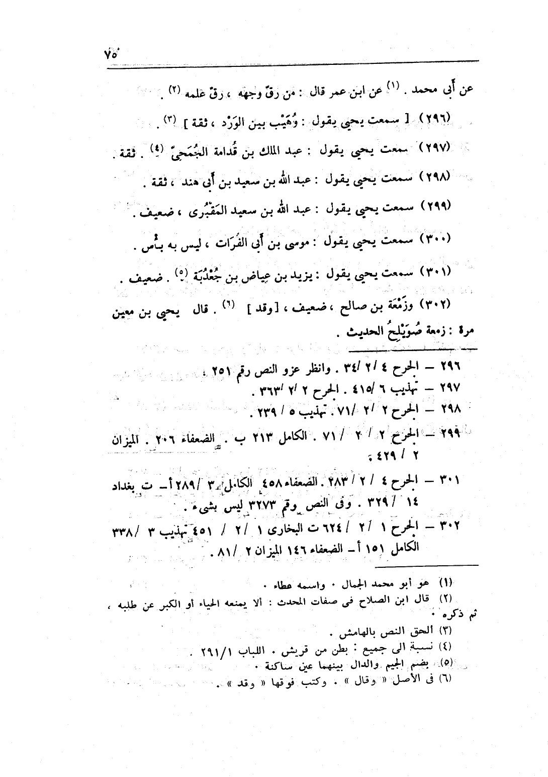 302 - وَزَمعَة بن صَالح ضَعِيف وَقد قَالَ يحيى بن معِين مرّة زَمعَة صُوَيْلِح الحَدِيث