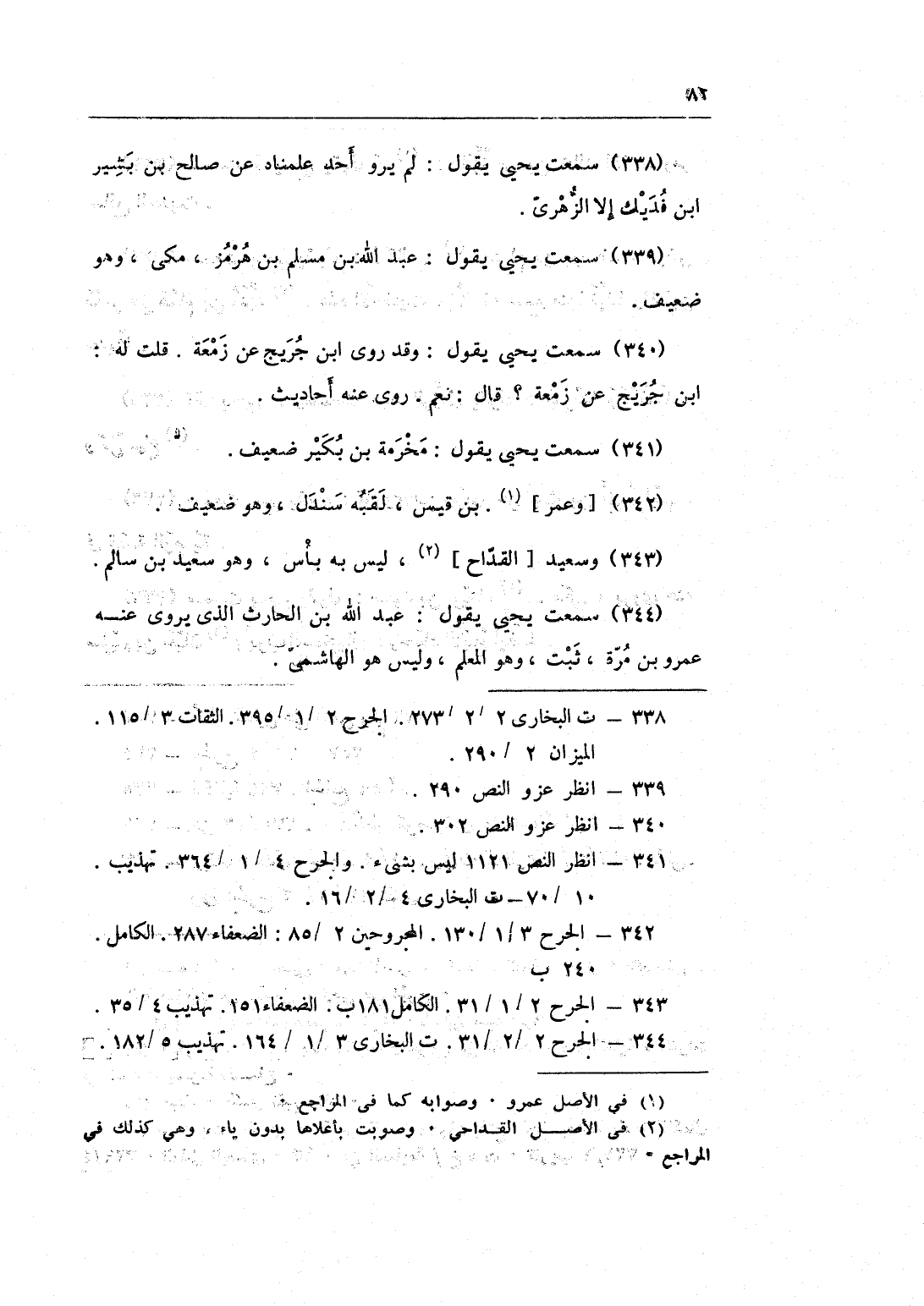 340 - سَمِعت يحيى يَقُول وَقد روى بن جريج عَن زَمعَة قلت لَهُ بن جريج عَن زَمعَة قَالَ نعم روى عَنهُ أَحَادِيث