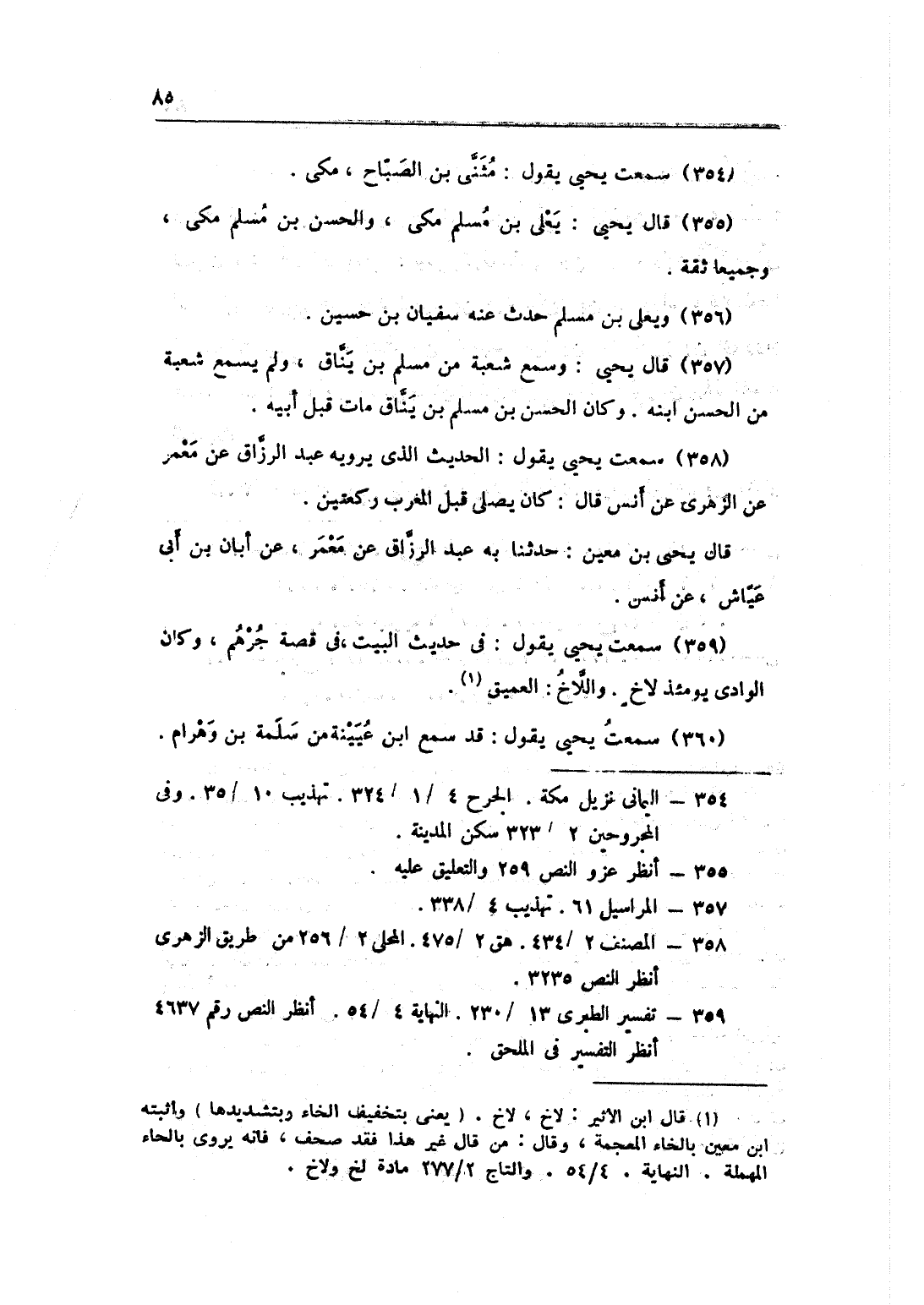 359 - سَمِعت يحيى يَقُول فِي حَدِيث الْبَيْت فِي قصَّة جرهم وَكَانَ الْوَادي يَوْمئِذٍ لاخ واللاخ العميق