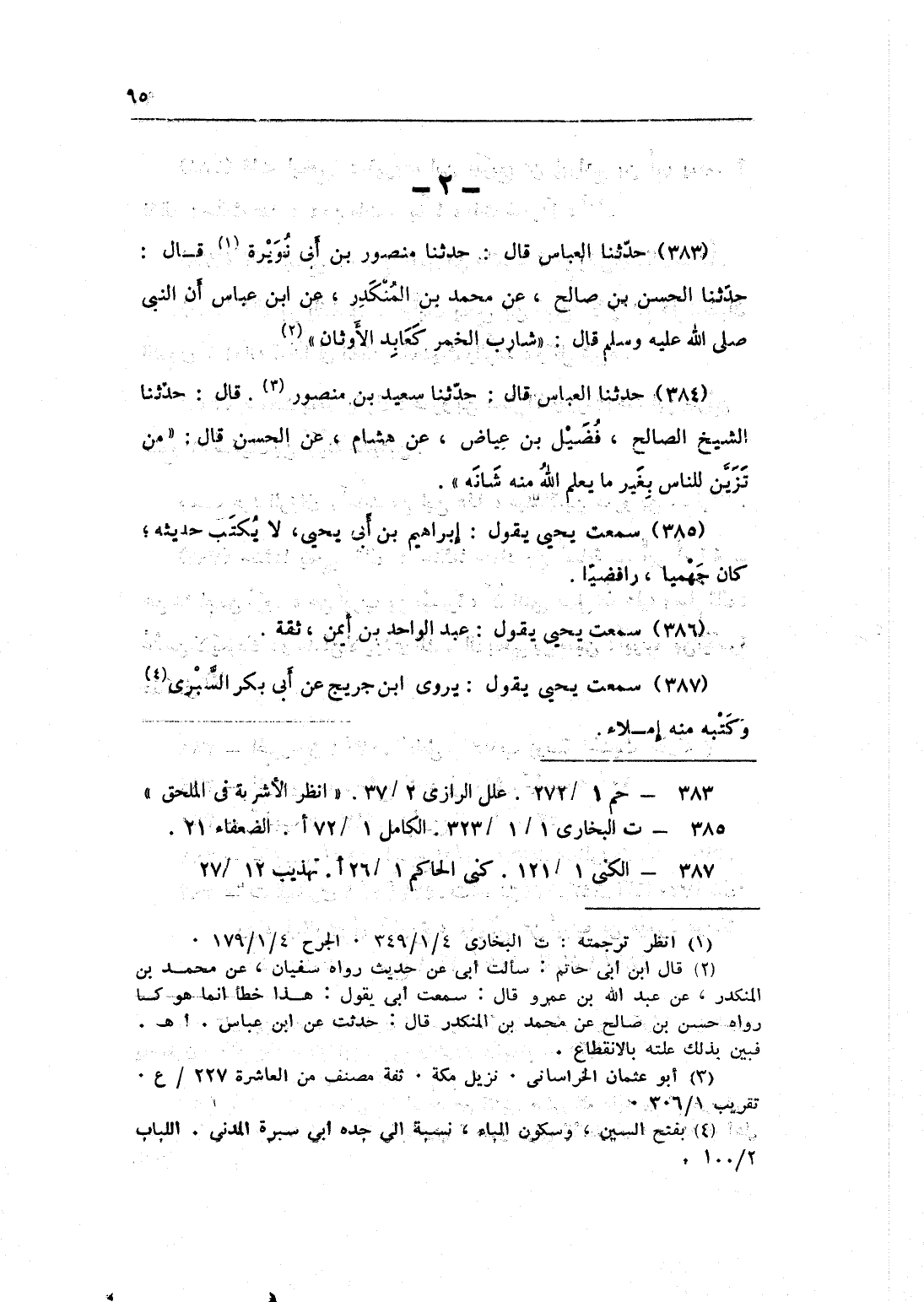 383 - حَدثنَا الْعَبَّاس قَالَ حَدثنَا مَنْصُور بن أَبى نُوَيْرَة قَالَ حَدثنَا الْحسن بن صَالح عَن مُحَمَّد بن الْمُنْكَدر عَن بن عَبَّاس أَن النَّبِي صلى الله عَلَيْهِ وَسلم قَالَ شَارِب الْخمر كعابد الْأَوْثَان